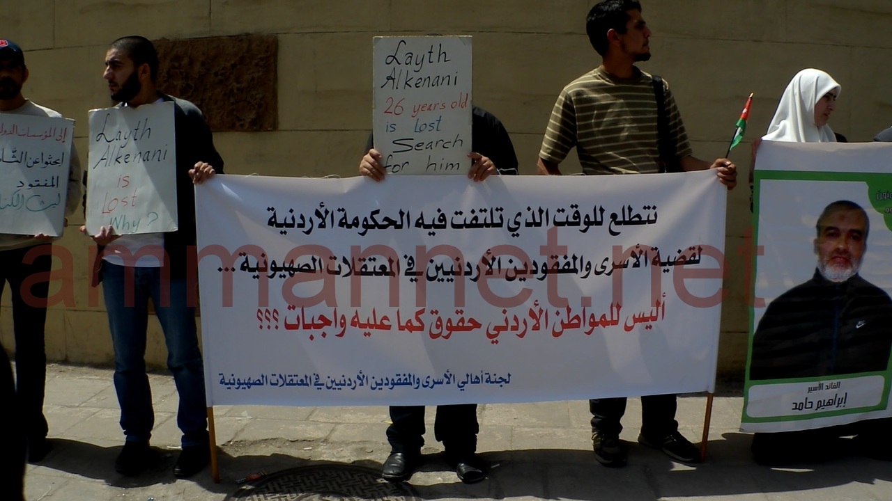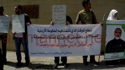 اعتصم ظهر الاحد أهالي الاسرى والمفقودين الاردنيين في سجون الاحتلال الاسرائيلي أمام الديوان الملكي مطالبين الحكومة والديوان بالتحرك الفاعل للكشف عن مصير أبنائهم وتحقيق ظروف اعتقال أفضل والعمل على إطلاق سراح أبنائهم.