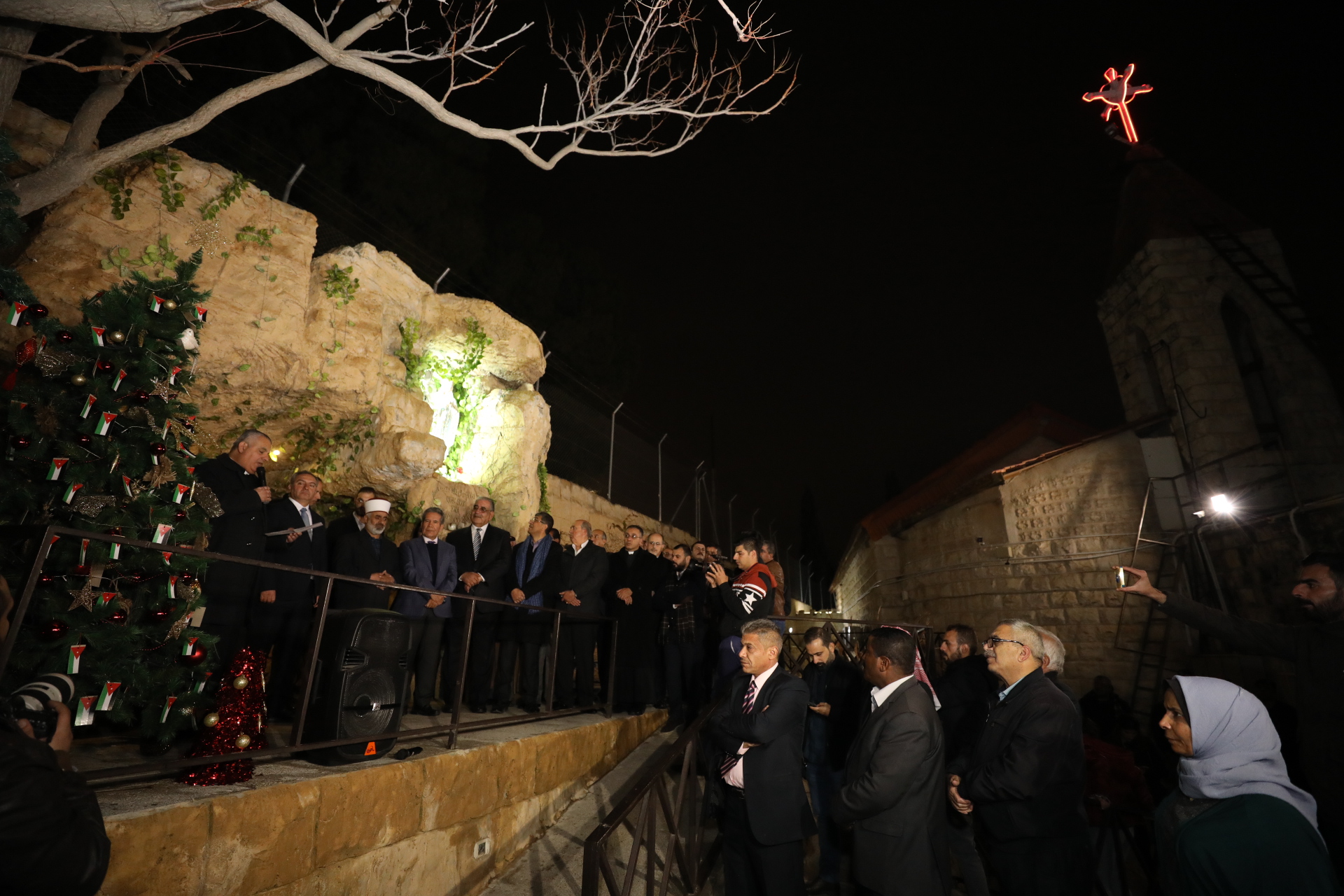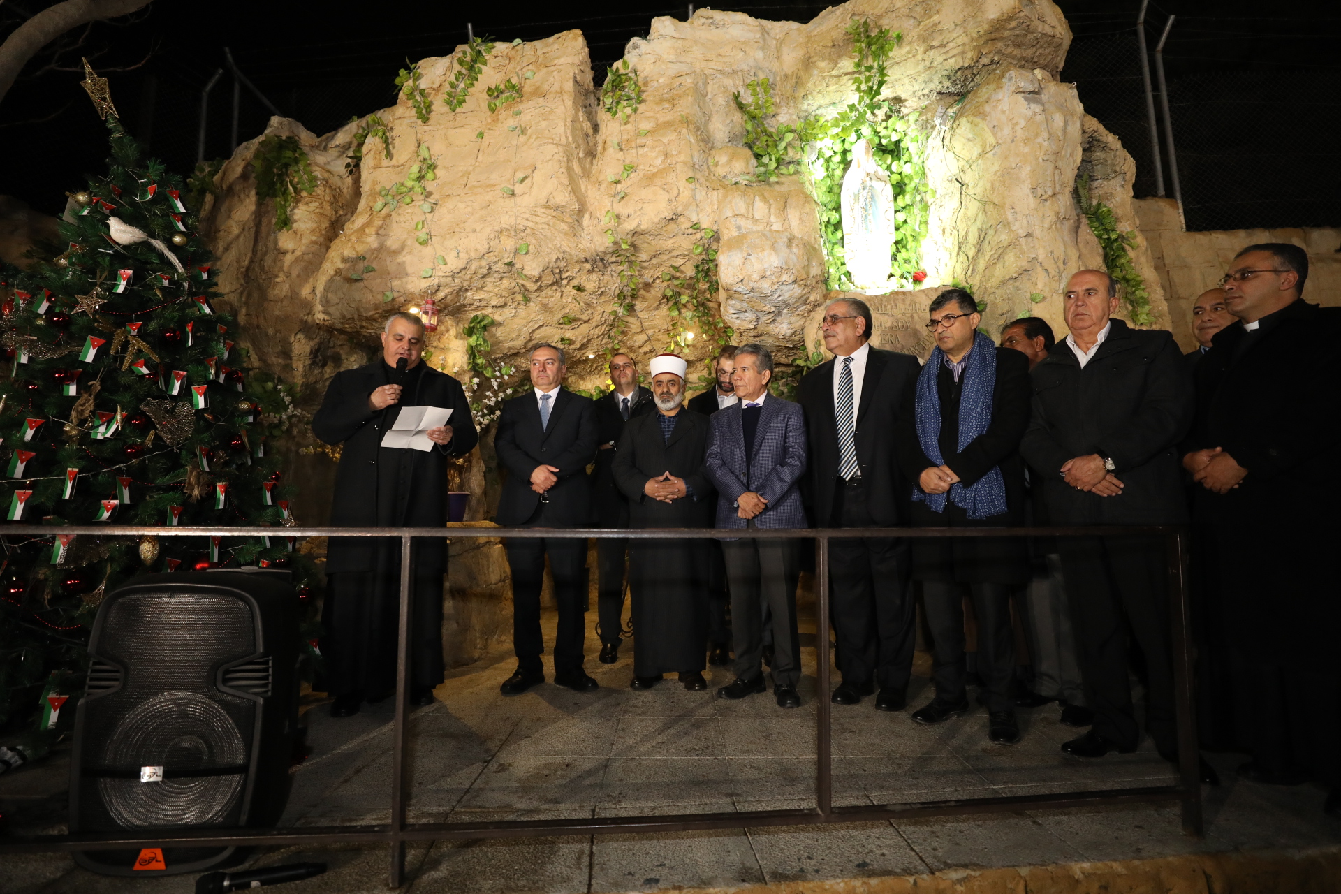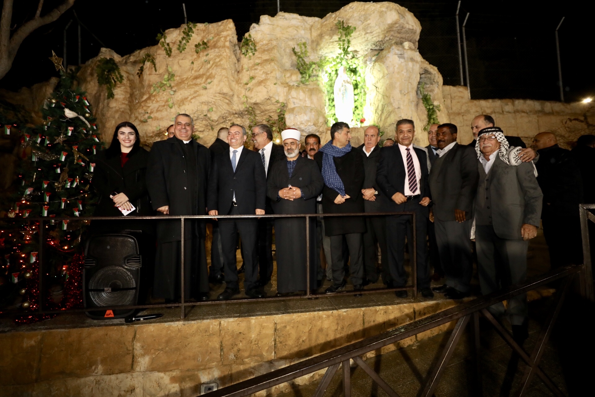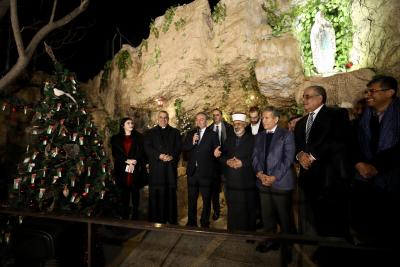وعلى أنغام المعزوفات التي أدّتها الفرقة الموسيقية التابعة لمجموعة كشافة ومرشدات دير اللاتين المصدار، أضاء وزير الشباب شجرة الوحدة الوطنية التي وضع عليها العلم الأردني إلى جوار زينة الميلاد، قرب مزار سيدة لورد السياحي في ناعور، بمشاركة الأب سيمون حجازين كاهن رعية ناعور، وأعضاء المجلس الرعوي في الكنيسة والبلدي في ناعور، وجمعية كاريتاس الأردن، وجمعية سند للفكر والعمل الشبابي، وتيار ’للأردن‘ الشبابي، والأمين العام للشبيبة المسيحية في الأردن أسامة شطارة ، وجمعية نشامى ونشميات ناعور التي تبرعت لإنارة الشجرة المجاورة للكنيسة، وعدد كبير من أبناء الوجهاء من سكان ناعور ومن مختلف أنحاء المملكة .