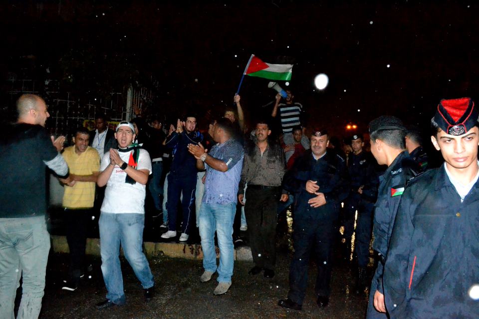 في استمرار للفعاليات المنددة بالانتهاكان الإسرائيلية في مدينة القدس والمسجد الأقصى، اعتصم عشرات الناشطين مساء الاثنين أمام السفارة الإسرائيلية في منطقة الرابية للمطالبة بطرد السفير الإسرائيلي وإغلاق السفارة.