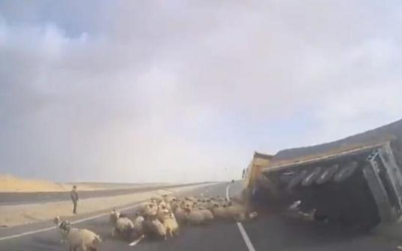 تدهور شاحنة محملة بالأغنام على طريق النقب