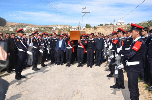 وأقيمت للفقيد الشهيد مراسم تشييع عسكرية مهيبة حيث حُمل على أكتاف زملائه من منتسبي الأمن العام ملفوفا بالعلم الأردني, ووري الثرى في مقبرة بلدة مقبلة-محافظة جرش بعد الصلاة عليه في مسجد المرحوم الحسين بن طلال(مقبلة الكبير) وسط حضور كبير من قيادات أمنية وأقرباء الفقيد وزملاءه ومحبيه وأصدقائه.