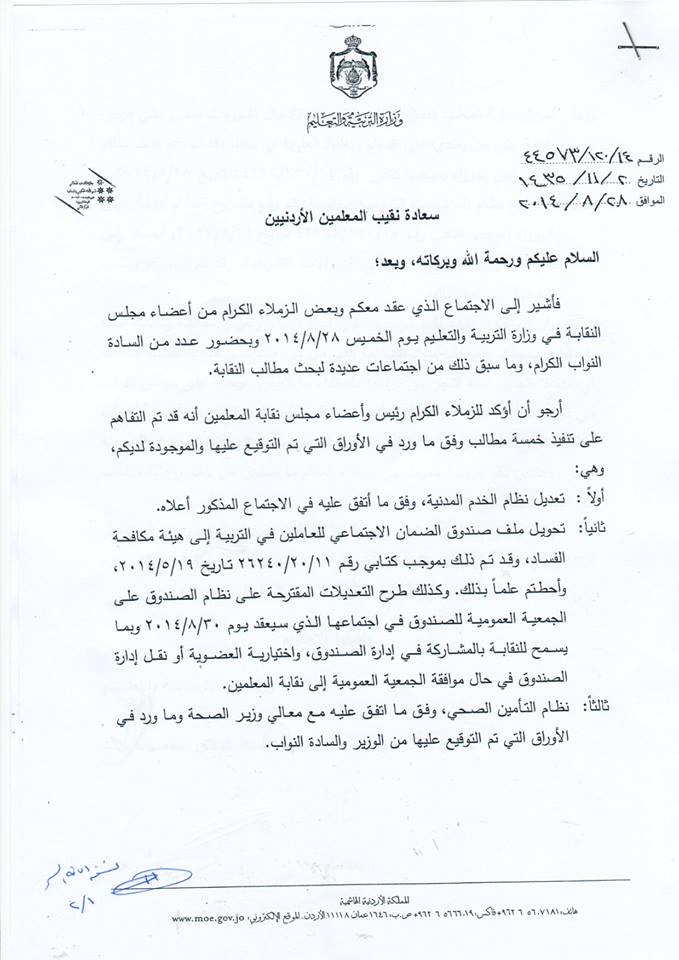 وكانت الهيئة المركزية للنقابة قد قررت تفويض مجلس النقابة بإعلان تعليق الإضراب أو الاستمرار به، بناء على الملاحظات التي أوردها أعضاء الهيئة على ورقة التفاهمات التي تمت بين مجلس النقابة من جهة و بين الحكومة من جهة أخرى ضمن الوساطة النيابية.