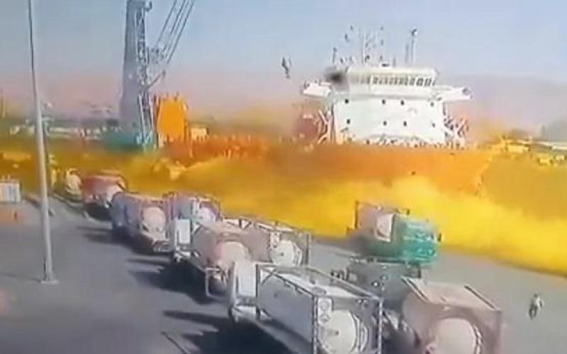 وبين أن الحاوية (رقم 6) والتي يبلغ حجمها (20 قدم) وتحمل (20 طناً) من غاز الكلورين وأثناء مناولتها انقطع حبل المناولة ما أدى إلى تسرب الغاز في بقعة كبيرة بالميناء.