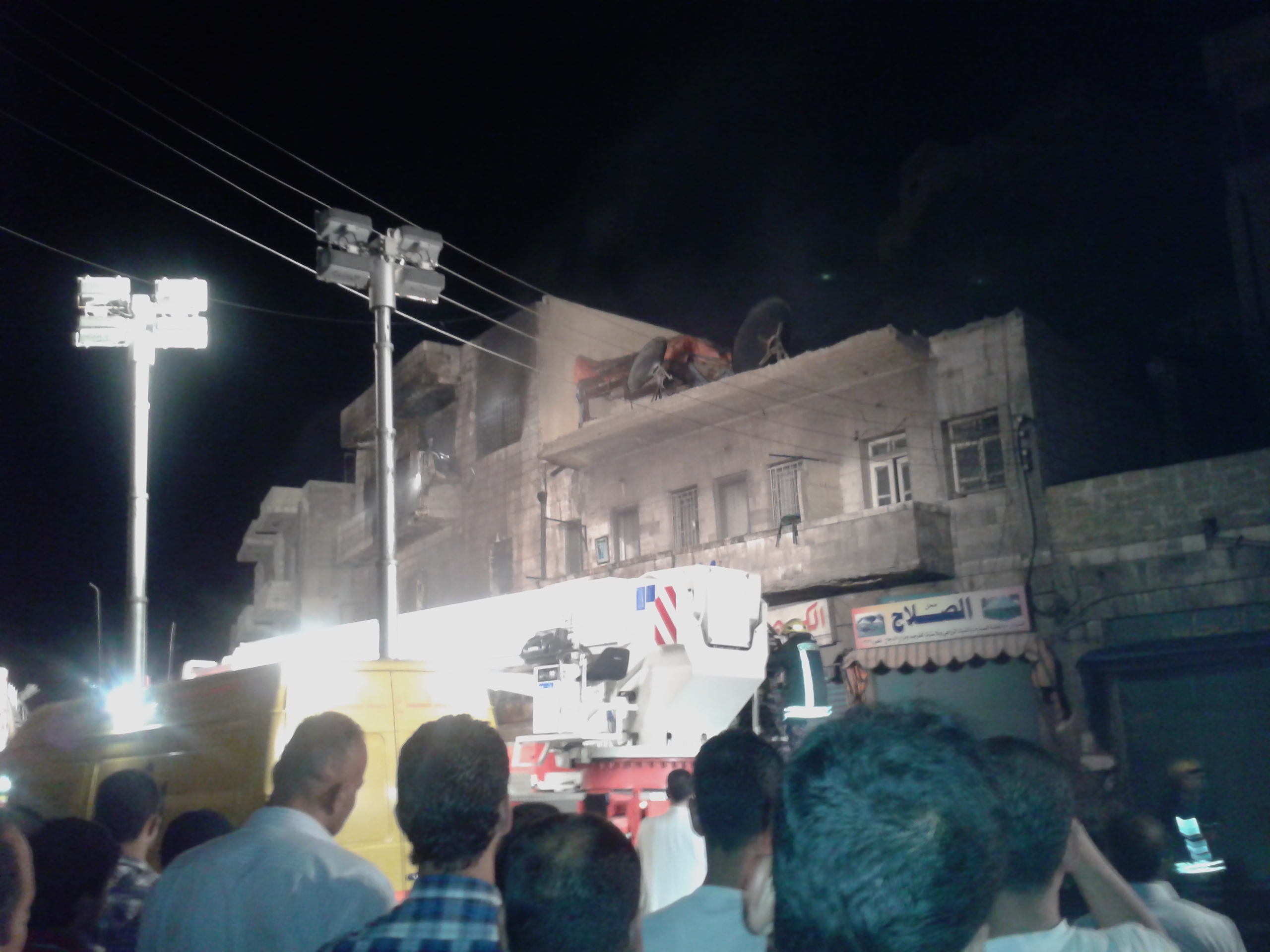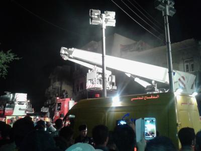 نشب حريق مساء الاحد في عمارة تحتوي على محلات تجارية وشقق سكنية بوسط البلد.