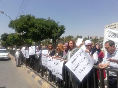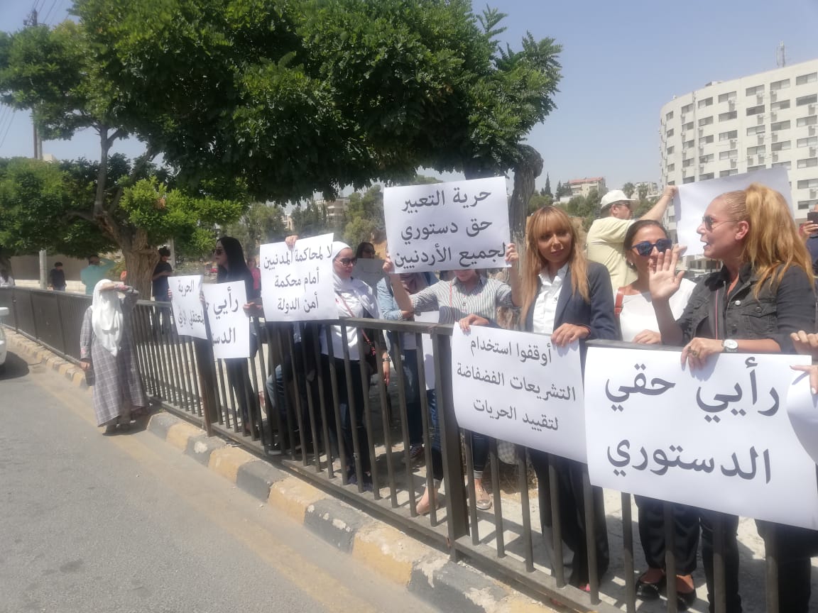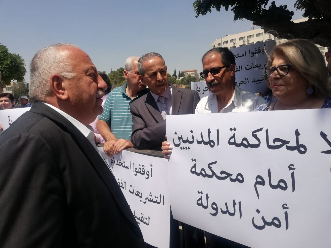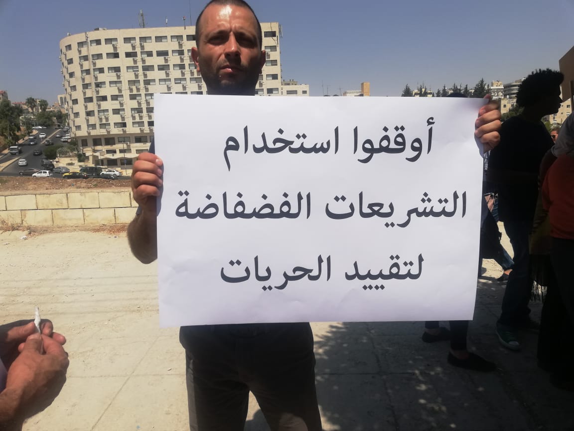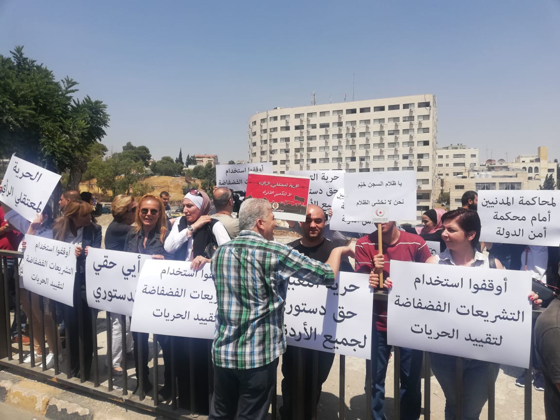 وجاء الاعتصام بدعوة من 12 منظمة مجتمع مدني بعد الاعتقالات التي تمت مؤخرا للنشطاء والحراكيين بموجب قانون الجرائم الإلكترونية، فيما شارك النائبان صالح العرموطي وخالد رمضان في الوقفة.