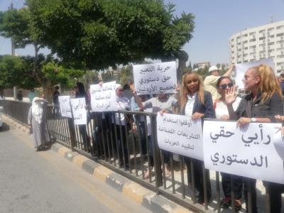 المحامية نور الإمام أكدت أن هذه الوقفة تأتي من مبادرات مؤسسات المجتمع المدني بالإضافة إلى حقوقيين من أجل حماية حرية الرأي والتعبير في الأردن وتحديدا بعد ما وقع مؤخرا من تجدد اعتقالات لناشطين استنادا لآراء عبروا عنها سواء على منصات مواقع التواصل الإجتماعي أو من خلال المسيرات .