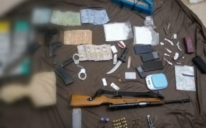 وفي ذات السايق فقد تمكنت قوة امنية مشتركة من مداهمة مكان وجود اكثر مروج للمواد المخدرة نشاطا في محافظة الكرك ، بعد تحديد مكان وجوده والقي القبض عليه وضبط بحوزته اربعة اسلحة نارية ، وكميات متفرقة من المواد المخدرة المعدة للبيع.