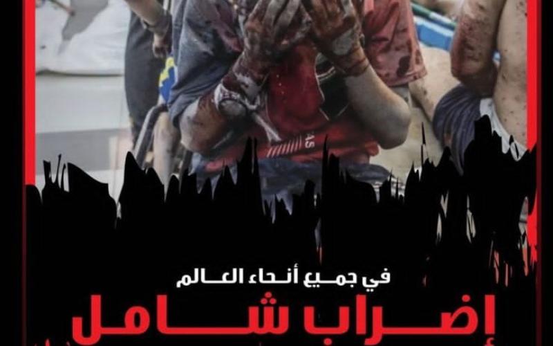 الدعوة إلى إضراب شامل في جميع البلدان ولكل مناحي الحياة بالعالم أجمع لأجل المطالبة بوقف إطلاق النار في القطاع