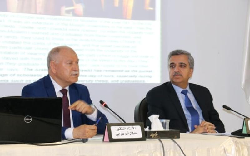 استضاف منتدى الفكر العربي، مساء يوم الأحد 21/7/2019، الأمين العام السابق لاتحاد الجامعات العربية أ.د. سلطان أبو عرابي في محاضرة له بعنوان "واقع التعليم العالي والبحث العلمي في الوطن العربي"، تناول فيها تطور التعليم العالي وانتشار الجامعات في البلدان العربية، بما فيها الجامعات الخاصة التي يبلغ عددها 500 جامعة وتشكل 40% من إجمالي العدد الكلي للجامعات العربية اليوم الذي يصل إلى 1150 جامعة حكومية وأهلية، مشيراً إلى بعض التداعيات والظواهر التي رافقت هذا التوسع وأثره على جودة التعليم العالي وإمكانات البحث العلمي.