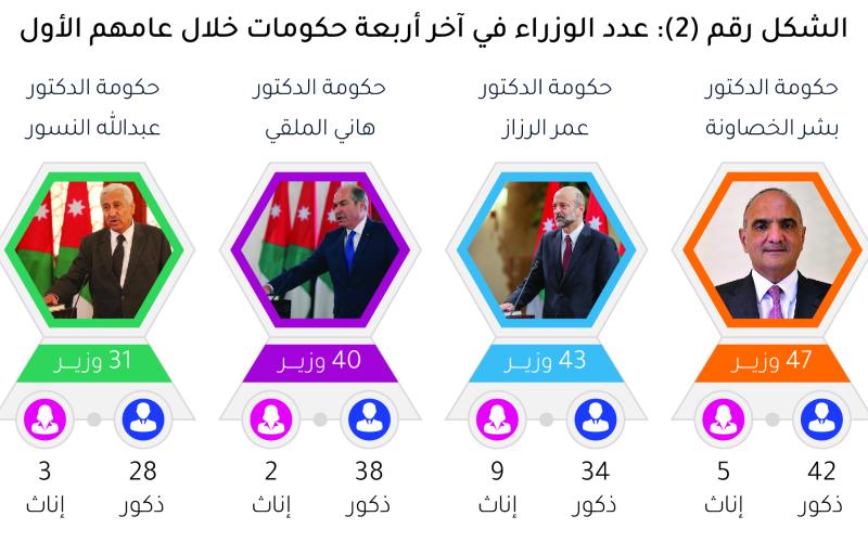 حكومة الخصاونة الأعلى بعدد الوزراء مقارنة بآخر 4حكومات.