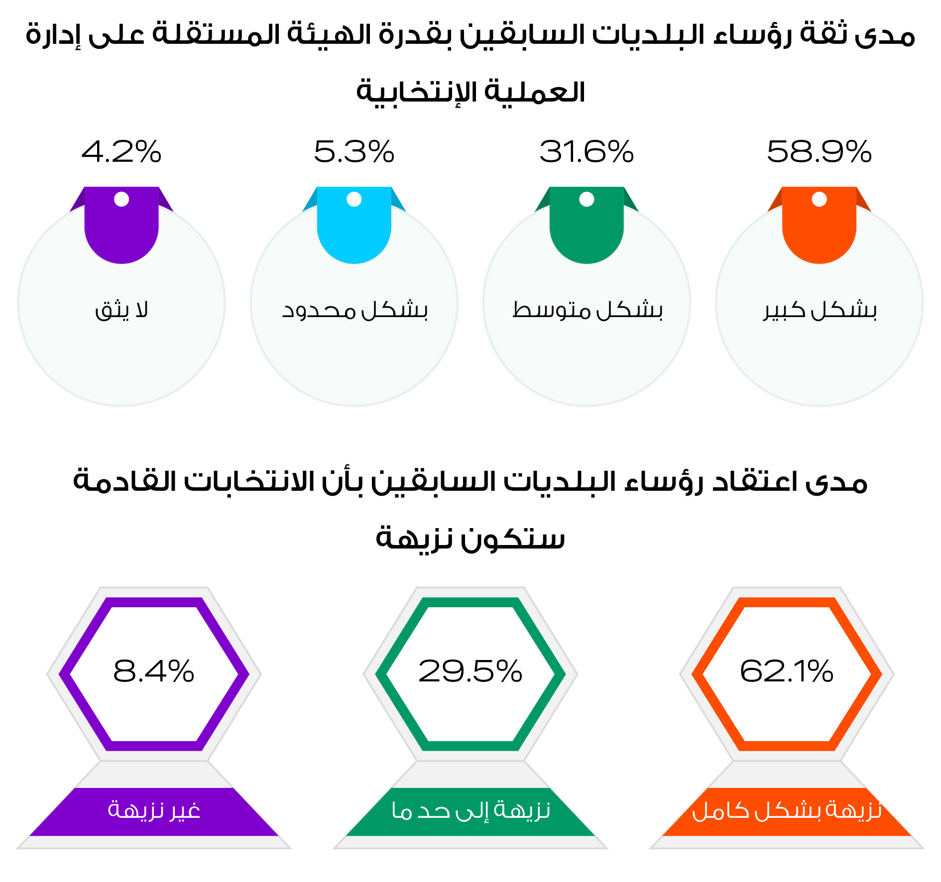 62% من رؤساء البلديات السابقين قالوا بأن الانتخابات القادمة ستكون نزيهة بشكل كامل.