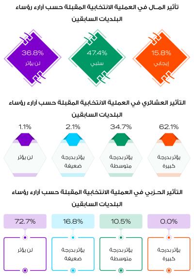 47.4% من رؤساء البلديات قالوا ان المال سيلعب دوراً سلبياً في الانتخابات.