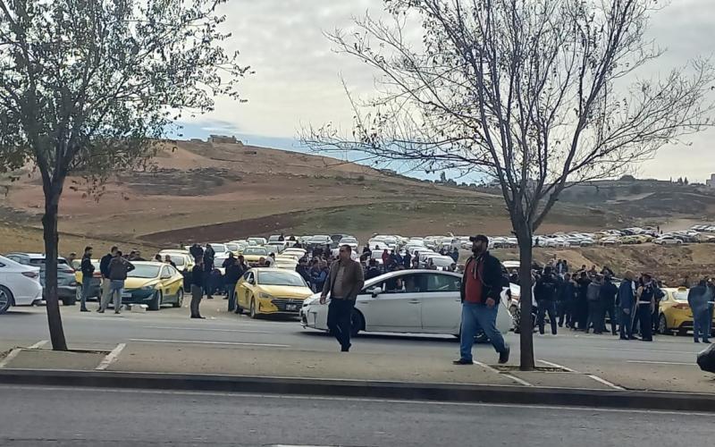 وتجمع العشرات من مركبات التكسي بالقرب من مجمع عمان الجديد للتأكيد على انضمامهم للإضراب وسائل النقل العام.