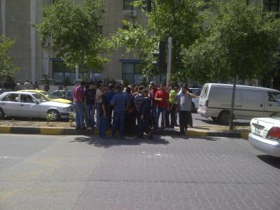 سائقو باصات صويلح يعتصمون أمام الامانة- صور