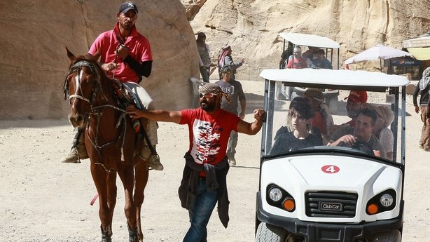 يهم المُقعد النمساوي رودي (43 عاما) بمساعدة بسيطة بركوب واحدة من عشر سيارات كهربائية حلت بدلا عن عربات تجرها خيول لنقل السياح في مدينة البتراء الأثرية، في وسيلة نقل تساعد أصحاب الاحتياجات الخاصة وتحدّ من انتقادات المدافعين عن حقوق الحيوانات.