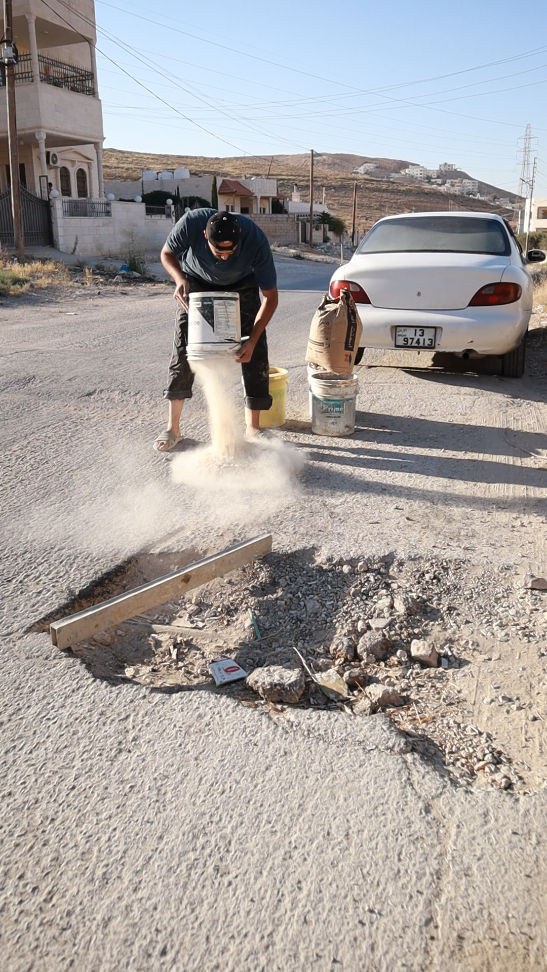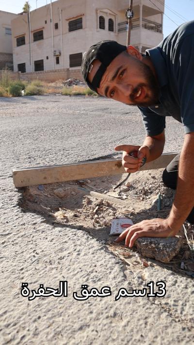 شاب اردني يٌصلح الحفر في الشوارع على نفقته الخاصة (شاهد)