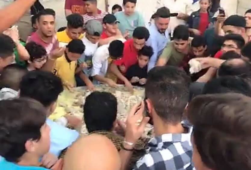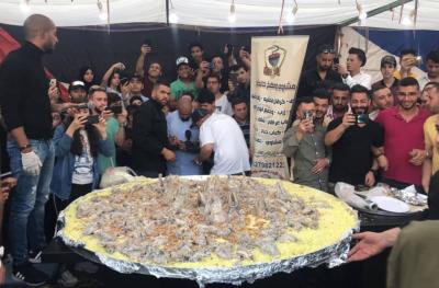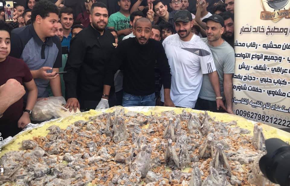 وقال صاحب المطعم إن الحضور فاقوا المتوقع حيث تجاوز عددهم 200 شخص بينما كانت سدر المنسف بقطر 3 متر يكفي حوالي 700 شخص.