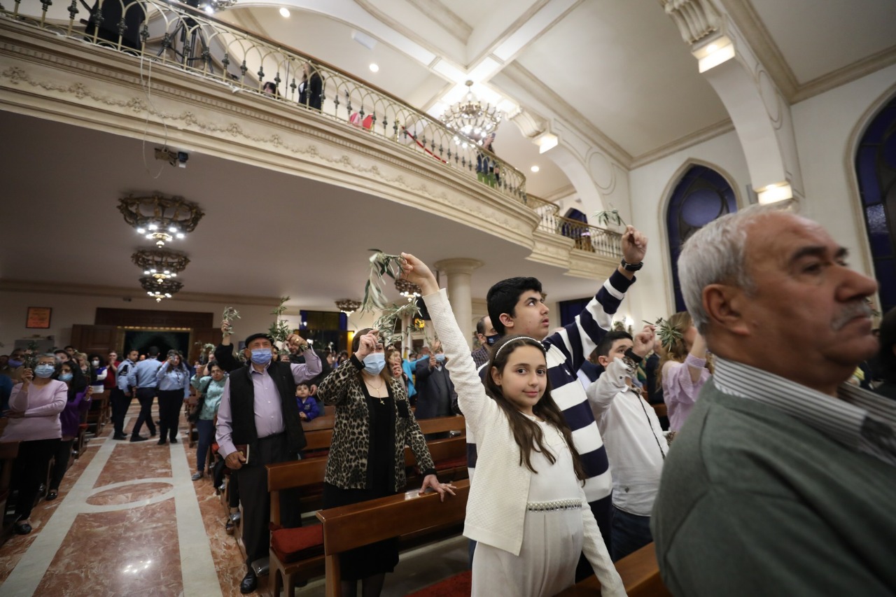ورفع المصلون أغصان الزيتون وسعف النخيل، وأقيمت دورات احتفاليّة خارج الكنائس وسط أجواء من الفرح والبهجة ترافقت مع عودة الحضور إلى الاحتفالات الدينيّة إلى شكله الطبيعي المعتاد، بعد نحو عامين من الإغلاقات وتحديد حضور التجمعات في أماكن العبادة بسبب ظروف الجائحة.