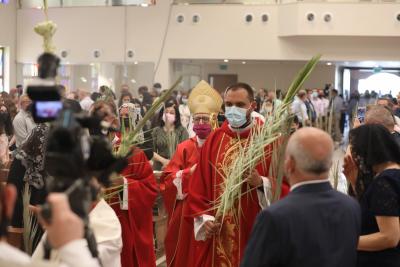 وفي حديث خاص قال المطران الشوملي ان الاحتفال كان مشتركا بالحضور الوجاهي والبث المباشر لمن يصعب عليهم الحضور. "احتفالات أحد الشعانين مميزة خاصة للأطفال والذين يحملون سعف النخيل والورود في ذكرى دخول المسيح للقدس وقد حرصنا على اتباع البروتوكول الصحي من تباعد وارتداء الجميع للكمامات. "