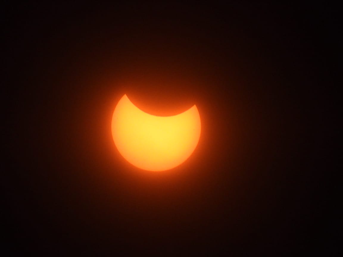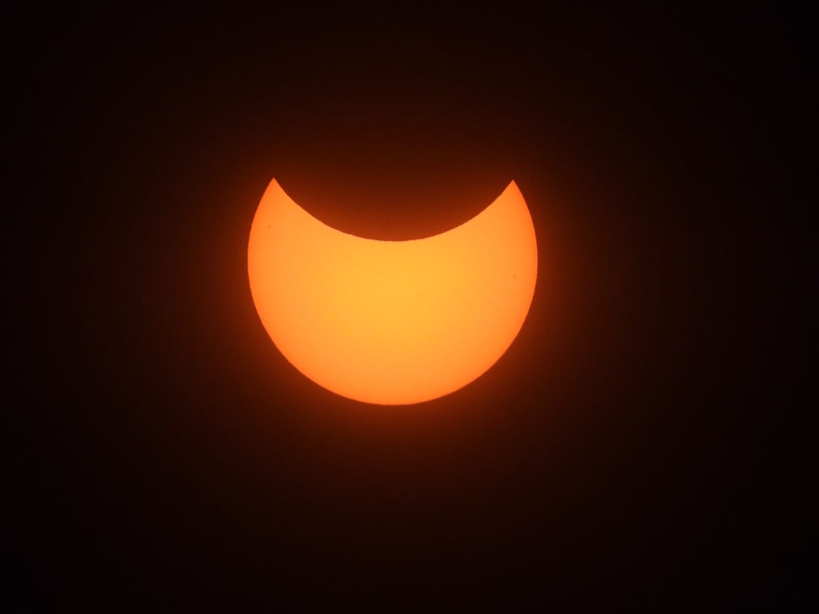 وتبلغ نسبة الاحتجاب القصوى للشمس 34.8%، بعد ذلك يبدأ الكسوف الجزئي بالتراجع تدريجياً حتى ينتهي عند الساعة الثالثة و23 دقيقة عصراً وهو آخر تلامس بين قرص القمر وقرص الشمس.
