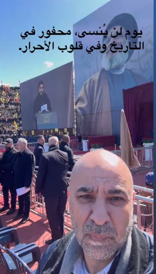 وكما شاركت قبل حوالي ٧ أشهر في تشييع شهيد الأمة اسماعيل هنية رئيس المكتب السياسي لحركه ح م ا س في الدوحة،شاركت اليوم في جنازة الشهيدين حسن نصرالله و هاشم صفي الدين أميني عام ح ز ب الله في بيروت بعد أنْ قمت مساء الامس بزيارة مكان إستهدافهما في الضاحية الجنوبية بمشاركة عدد من الشخصيات الوطنية الأردنية.".