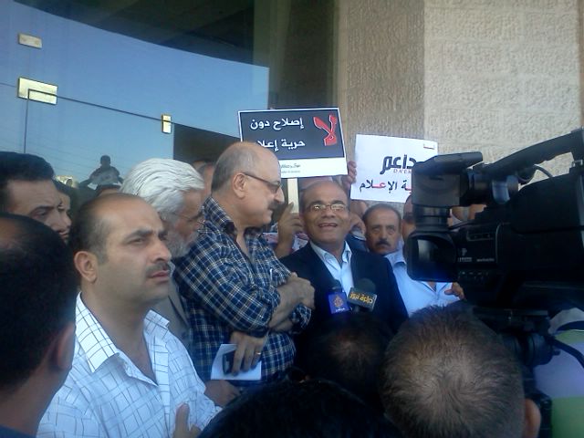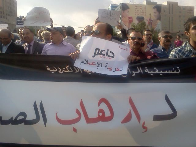 نفذ عاملون في المواقع الالكترونية وممثلون عن نقابة الصحفيين، مسيرة مساء الاثنين، من أمام صحيفة الدستور وصولا إلى صحيفة العرب اليوم، وذلك احتجاجا على إقرار لجنة التوجيه النيابية لقانون المطبوعات والنشر والمقرر عرضة للمناقشة تحت القبة في جلسة الثلاثاء.