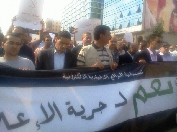 ورفع المشاركون في المسيرة التي دعت إليها تنسيقية المواقع الالكترونية، شعارات تؤكد على حرية الإعلام وضرورة رفع القبضة الأمنية ورفض العودة للأحكام العرفية، ومنها "لا لقمع الحريات".. "وطن حر يساوي قلم حر"..