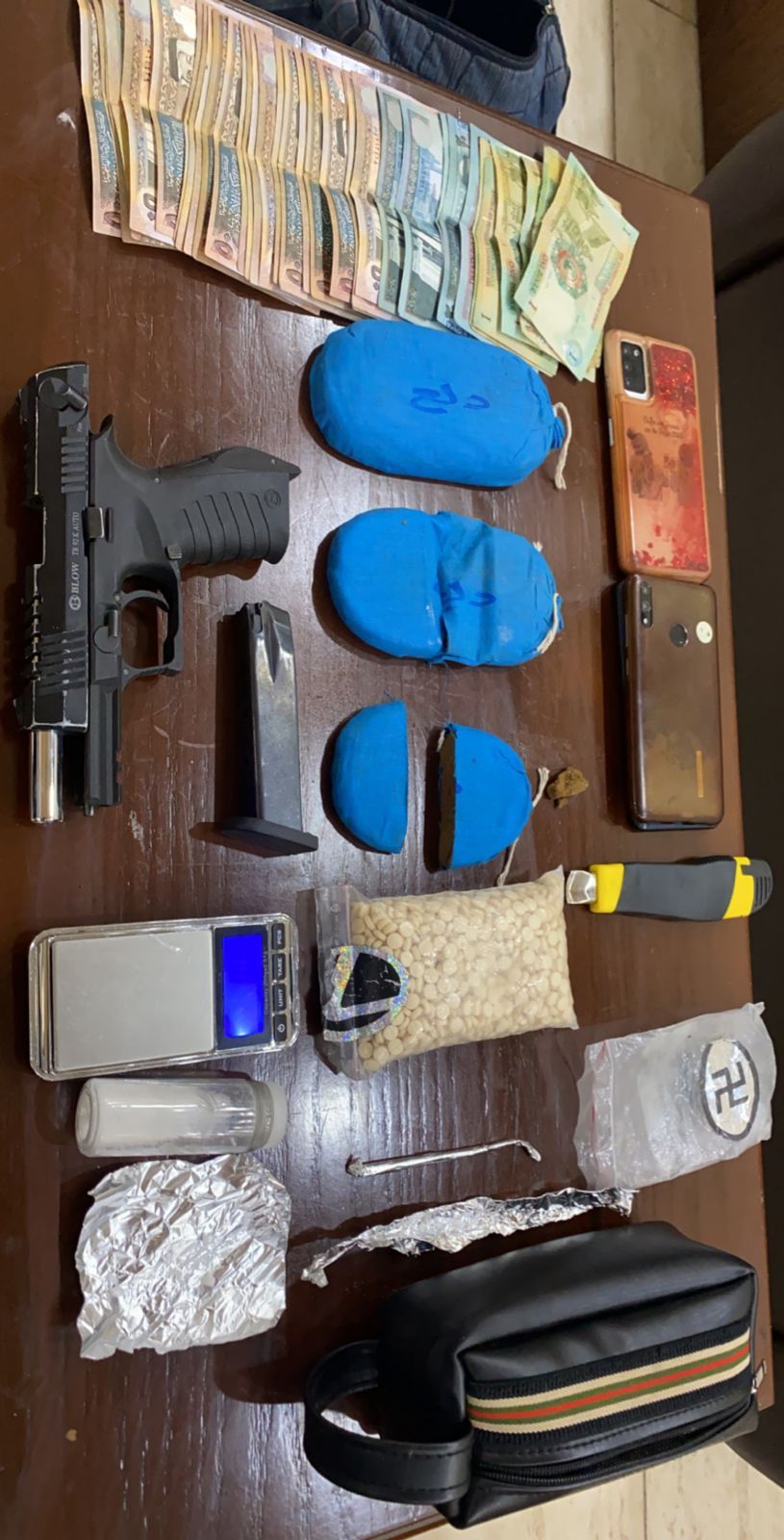 وأكد الناطق الاعلامي انه في القضية الثالثة ألقي القبض على مروج للمواد المخدرة جنوب العاصمة بعد مراقبته ومتابعة نشاطه الجرمي ومداهمته داخل إحدى الشقق التي استخدمها لترويج المواد المخدرة وضُبط بحوزته 1000 حبة مخدرة وكمية من مادة الكريستال المخدرة وسلاح ناري .