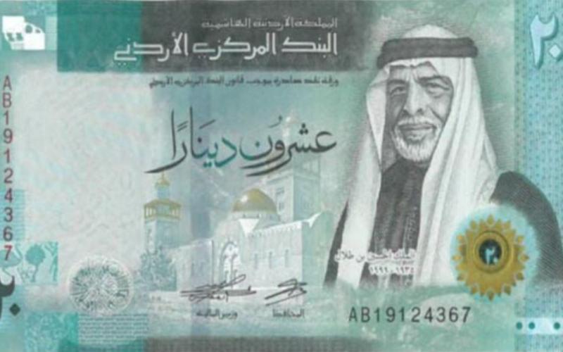 قال البنك المركزي الأردني، إنه سيبدأ بطرح الإصدار الخامس من فئة العشرين دينارا في التداول، والتي يزين وجهها صورة الملك الحسين بن طلال، طيب الله ثراه، اعتباراً من الثلاثاء، جنبا إلى جنب مع فئة العشرين دينارا الإصدار الرابع.