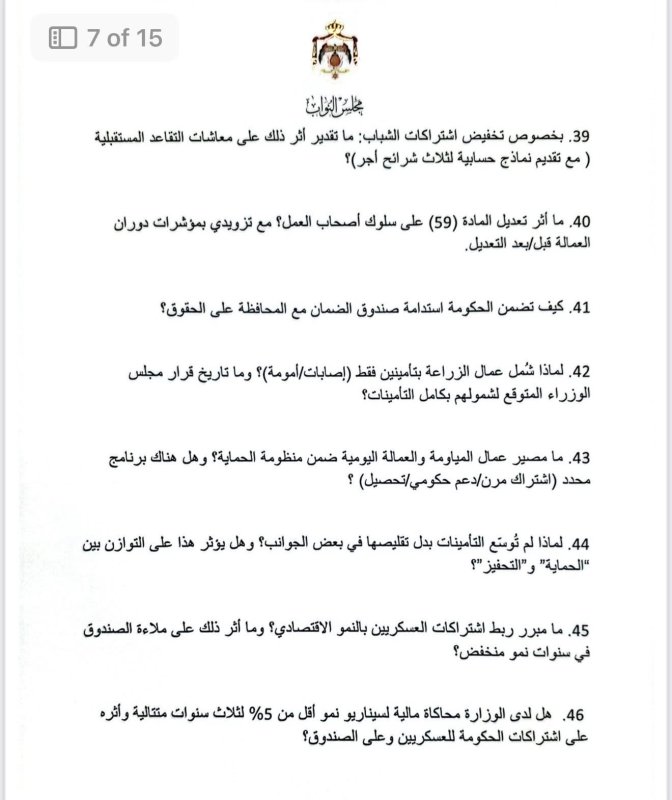 وكانت جلسة النواب قد شهدت جدلاً واسعًا عقب رد وزير العمل خالد البكار، والذي وُصف من قبل بعض النواب بـ"القاسي والمسيء"، ما دفع النائب طهبوب إلى اتخاذ خطوة التصعيد الرقابي.