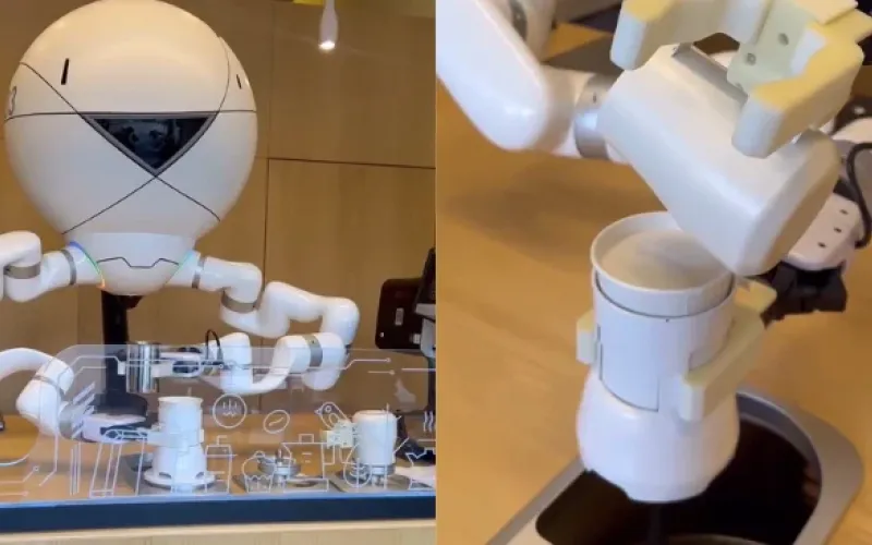 رجل آلي يتحرك كأنه باريستا محترف, يطحن الحبوب, يخفق الحليب, ويجهز اللاتيه بدقة ميكانيكية تبعث على الإعجاب. لكن السحر الحقيقي يكمن في وجه الفنجان.
