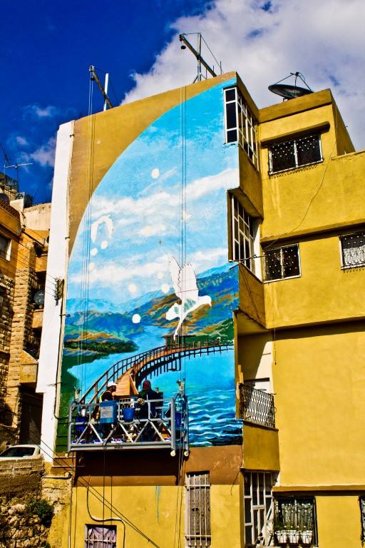 فنانون يزينون شوارع جبل القلعة بالرسومات الفنية - صور