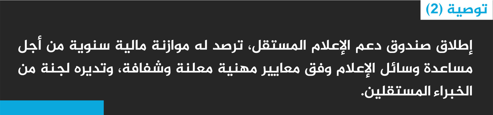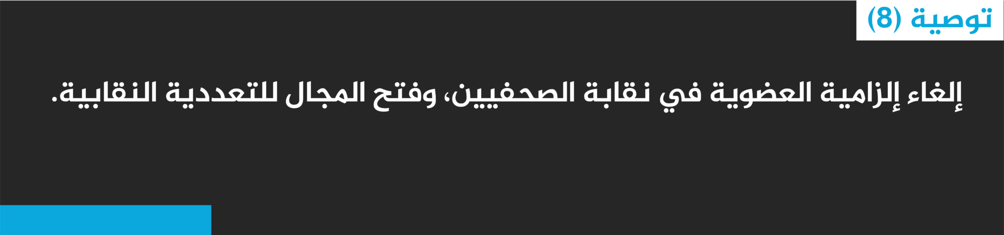 لم تقدم الحكومة سنة 2021 أي إعفاءات ضريبية لوسائل الإعلام بما فيها الصحف الورقية، ولم تنشئ صندوق دعم الإعلام، واستمرار أوامر منع النشر، وعدم السماح بتعددية التمثيل النقابي ضمن "التنظيم الذاتي للصحفيين" يُبقي نقابة الصحفيين الممثل النقابي الوحيد للصحفيين في أضعف حالاتها، ولا تتمتع بالاستقلالية الضامنة لتمثيل الصحفيين في مجلس النقابة فضلا عن تأثيرها المحدود في تمثيل جميع الصحفيين والإعلاميين الأردنيين، بسبب مبدأ إلزامية العضوية الذي لا يعترف بغير الصحفيين المسجلين في النقابة، ويتعرض كل من يطرح نفسه كصحفي من غير أعضائها لعقوبات تصل إلى السجن، وكلها مخالفات واضحة للدستور، وللعهد الدولي الخاص بالحقوق المدنية والسياسية.