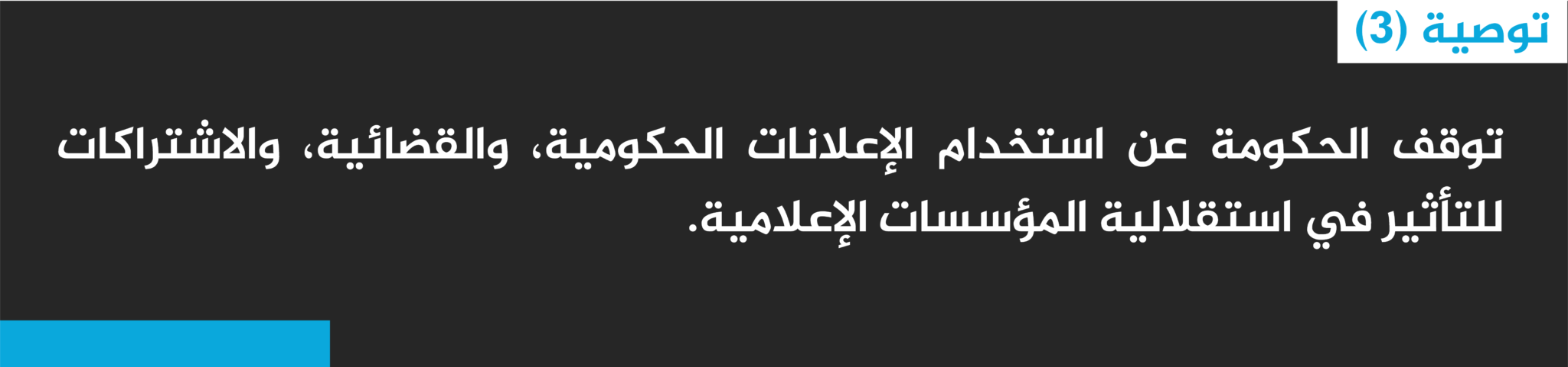 وأضاف أن الحكومات سابقا لم تكن تتدخل في الإعلانات وكانت واسعة الانتشار، ولكنها مارست الضغط على الصحف الأسبوعية وكانت تحاصرها، مؤكدا على وجود سياسة تفضيل مؤسسات إعلامية على أخرى، مثل تفضيل قناة المملكة على التلفزيون الأردني.