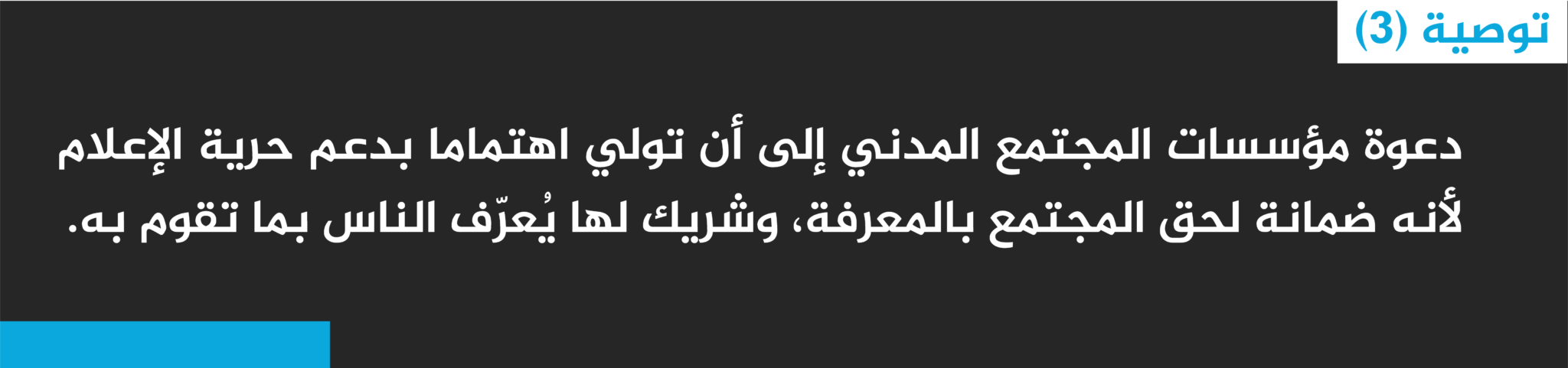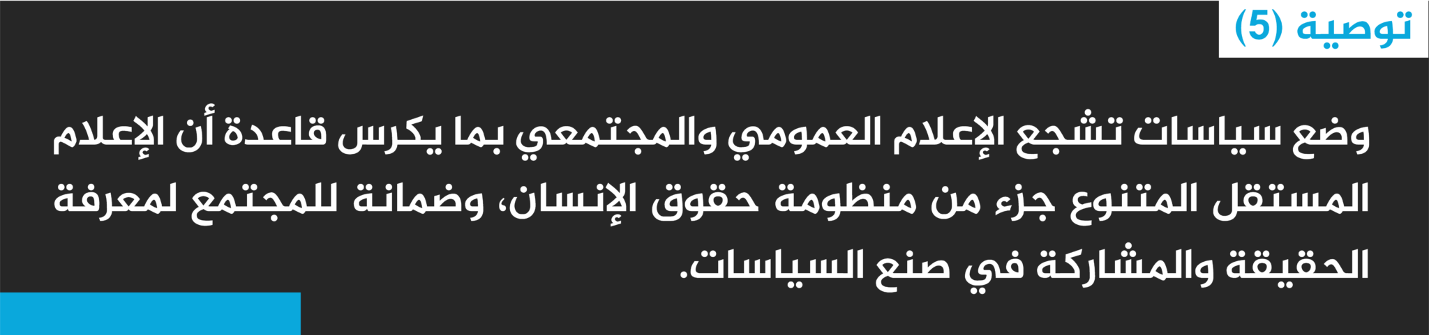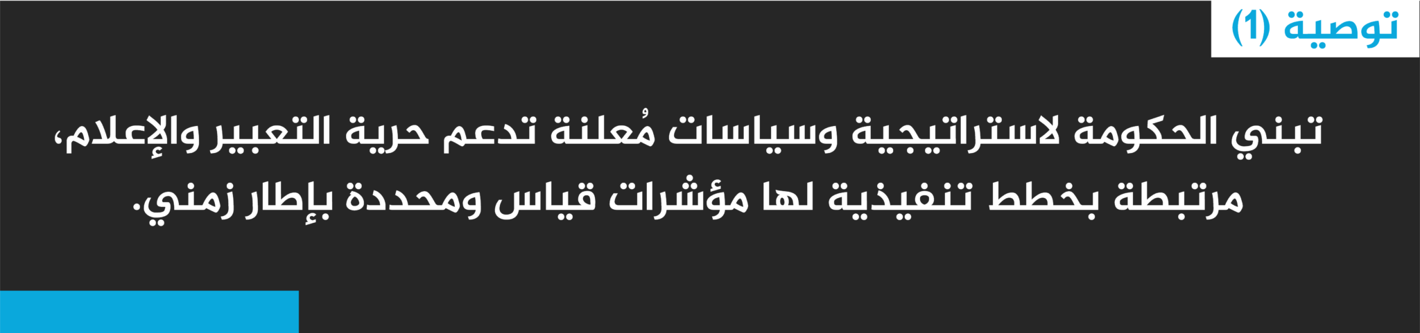 أولت مقترحات اللجنة الملكية الإعلام اهتمامها في قسم "الحريات العامة في قسم تمكين الشباب"، فقد اعتبرت اللجنة "الحريات العامة الضمانةَ الأساسية للعمل السياسي في الأردن، قائلة "إن أيّ تمكين سياسي للشباب يستوجب التطبيق الأمثل لحقوق الإنسان، وتوفير المساحة الآمنة للحريات العامة الضامنة للعمل السياسي ووفق القوانين والأنظمة المعمول بها، مع الحاجة إلى تعديل وإلغاء بعض التشريعات بما يتناسب مع الرغبة المَلكيّة بتهيئة البيئة المحفّزة للعمل الحزبي والسياسي، وتحت طائلة المساءلة القانونية لكلّ مَن يتعرض بالمضايقة أو التمييز للشباب بسبب مشاركتهم الحزبية أو السياسية".