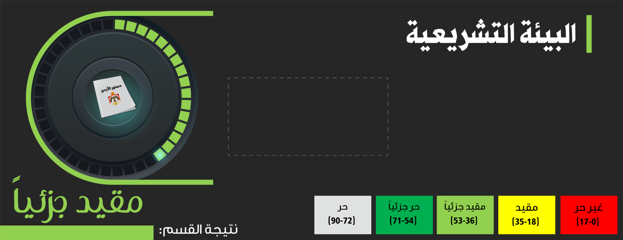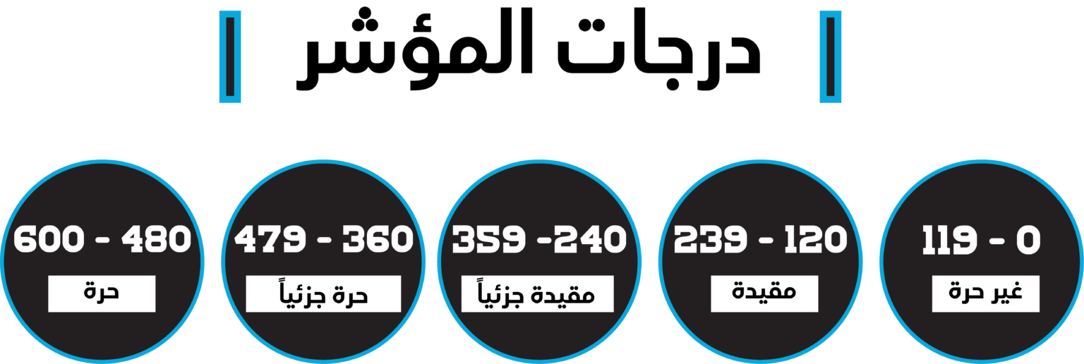 وحازت الأقسام الستة التي تضمنها تقرير هذا العام على نتيجة "مقيد"، باستثناء القسم المتعلق بالبيئة التشريعية الذي حصل على نتيجة "مقيد جزئيا"، وهو القسم الوحيد الذي حافظ على تصنيفه خلال عامي 2020 و2021، حيث حصل هذا العام على (34.9) نقطة من أصل (90) نقطة متاحة، وهي نتيجة أقل بست درجات عما حصل عليها سنة 2020 لكنها بقيت ضمن مؤشر "مقيد جزئيا".