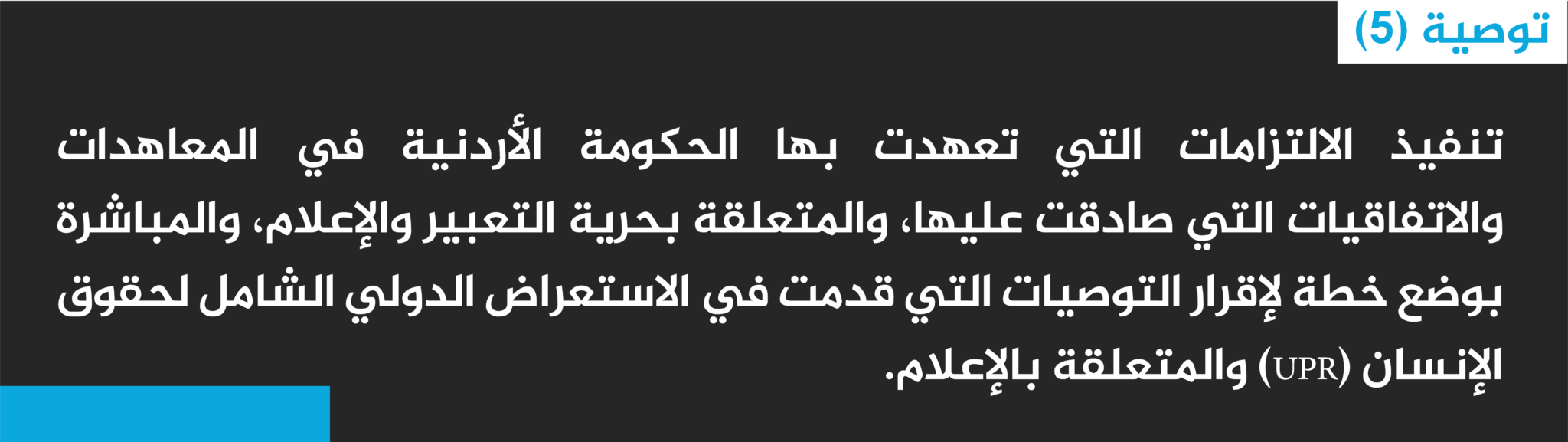 فقد استمر إنفاذ قانون الدفاع للسنة الثانية على التوالي بسبب استمرار جائحة كورونا، وظل أمر الدفاع رقم (8) الصادر بموجب قانون الدفاع أحد أبرز القيود على حرية الإعلام، فيما بقيت الحكومة هي المصدر الوحيد للمعلومات المتعلقة بجائحة كورونا. واستمرت مشاكل الإعلام الأردني والتحديات التي يواجهها على حالها، وفي الوقت الذي قدمت فيه الحكومة الجديدة "حكومة د. بشر الخصاونة" بيانها الوزاري لمجلس النواب مطالع عام 2021، وما قدمته من تعهدات في الإطار العام، إلا أنها لم تقدم خططا استراتيجية وعملية لتنفيذ تلك التعهدات.