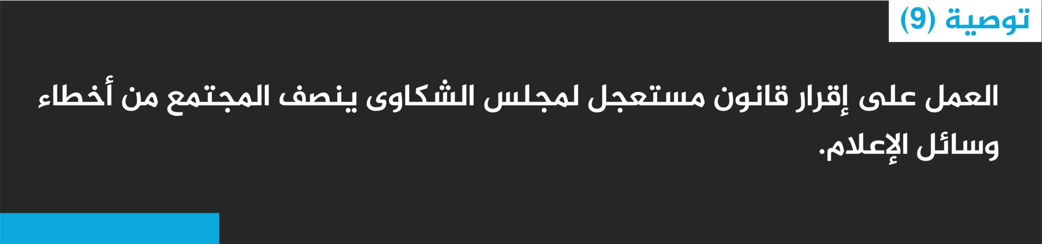 إن مؤشر التشريعات الإعلامية سنة 2021 جاء مقيد جزئيا للحريات الإعلامية، وهي مؤشرات ممتدة منذ سنوات عديدة مضت فقد ظل أغلبية الصحفيين والإعلاميين الأردنيين يرون في تلك التشريعات تقييدا على حرية الإعلام وحرية التعبير والنشر. ويُسجل لمجلس النواب إلغاءه للتعديل الحكومي المقترح على المادة (10) من مشروع قانون هيئة النزاهة ومكافحة الفساد التي تقضي بإدراج قضايا النشر ضمن قانون مكافحة الفساد، والذي يشكل تقييداً للحريات ويعد توسعاً في التشريعات التي من شأنها التضييق على الصحفيين.