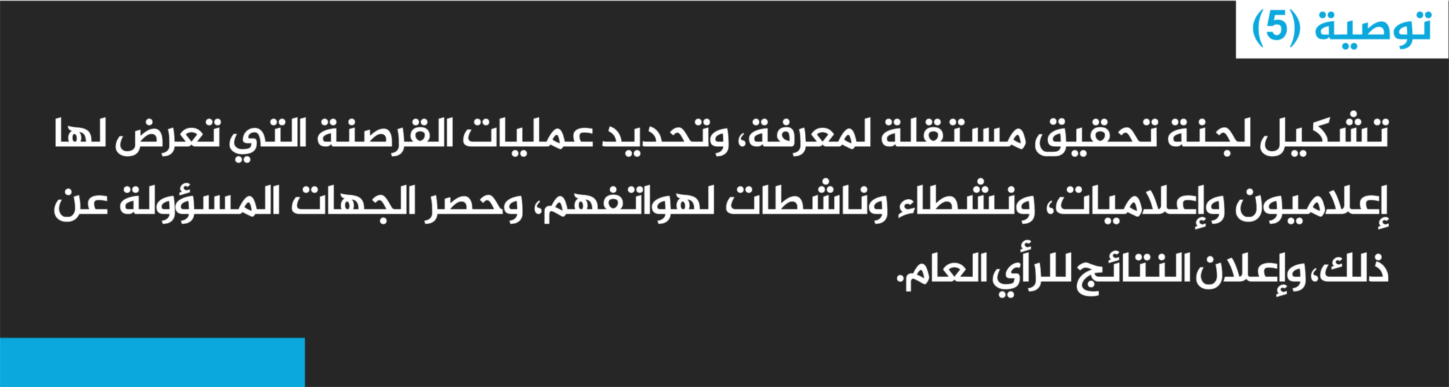 وإلى أي مدى يتعرض الصحفيين/ـات ونشطاء/ـات ومستخدمي/ـات منصات التواصل الاجتماعي لحملات تشهير وتحريض ضدهم نتيجة تعبيرهم عن آرائهم على الإنترنت ومنصات التواصل الاجتماعي؟ وهل يتعرضون لاختراق حساباتهم على منصات التواصل الاجتماعي و/أو هواتفهم الشخصية؟ وهل مستخدمي/ـات الإنترنت ومنصات التواصل الاجتماعي يفرضون على أنفسهم رقابة ذاتية مسبقة خوفا من التعرض للتضييق والمساءلة؟