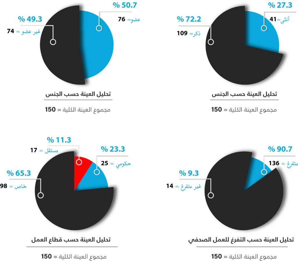 ومن الملاحظ أيضاً ارتفاع نسبة من يعتقدون بتعرض الصحفيين/ ـات للتحرش الجنسي في الوسط الإعلامي أثناء تأدية عملهم بحيث ارتفعت هذه النسبة سنة 2021 إلى 48% مقارنة بسنة 2020 التي وصلت فيها نسبة من يعتقدون ذلك إلى 25.4%.
