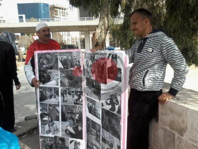 "مؤيدو النظام" يرفعون صور جرحى الأمن على الداخلية - صور