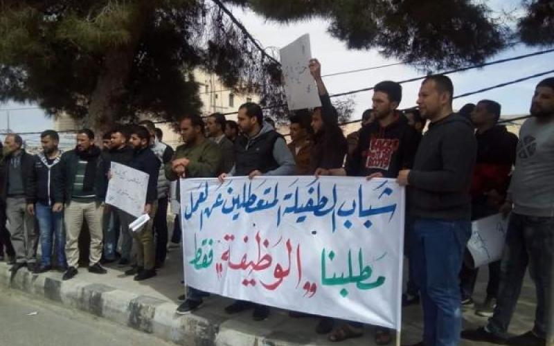 وقال المتعطلون إن زميلهم ما يزال موقوفا حتى الآن، وأن الأجهزة الأمنية أوقفته بحجة "الإساءة إلى الوطن".