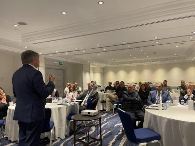 المسؤول الأممي بدأ محاضرته بتوضيح مفصل لكرم الحكومة الأردنية في استقبال وتوفير احتياجات اللاجئين بما في ذلك في مجال التعليم الأساسي مجاناً الصحة, أسواق العمل وتوفير أسس الحياة الكريمة رغم صعوبة ذلك على البنية التحتية للأردن وخاصة في مجال شح المصادر المائية.