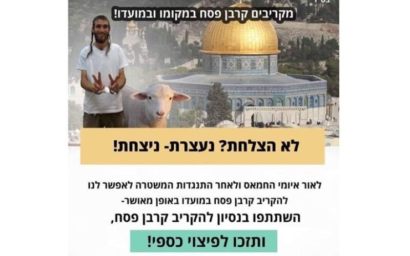 وأعلنت ما تسمى حركة "العودة إلى جبل الهيكل" عن مكافأة مالية لمن ينجح في تقديم "قربان الفصح" في المسجد الأقصى المبارك، خلال العيد العبري.