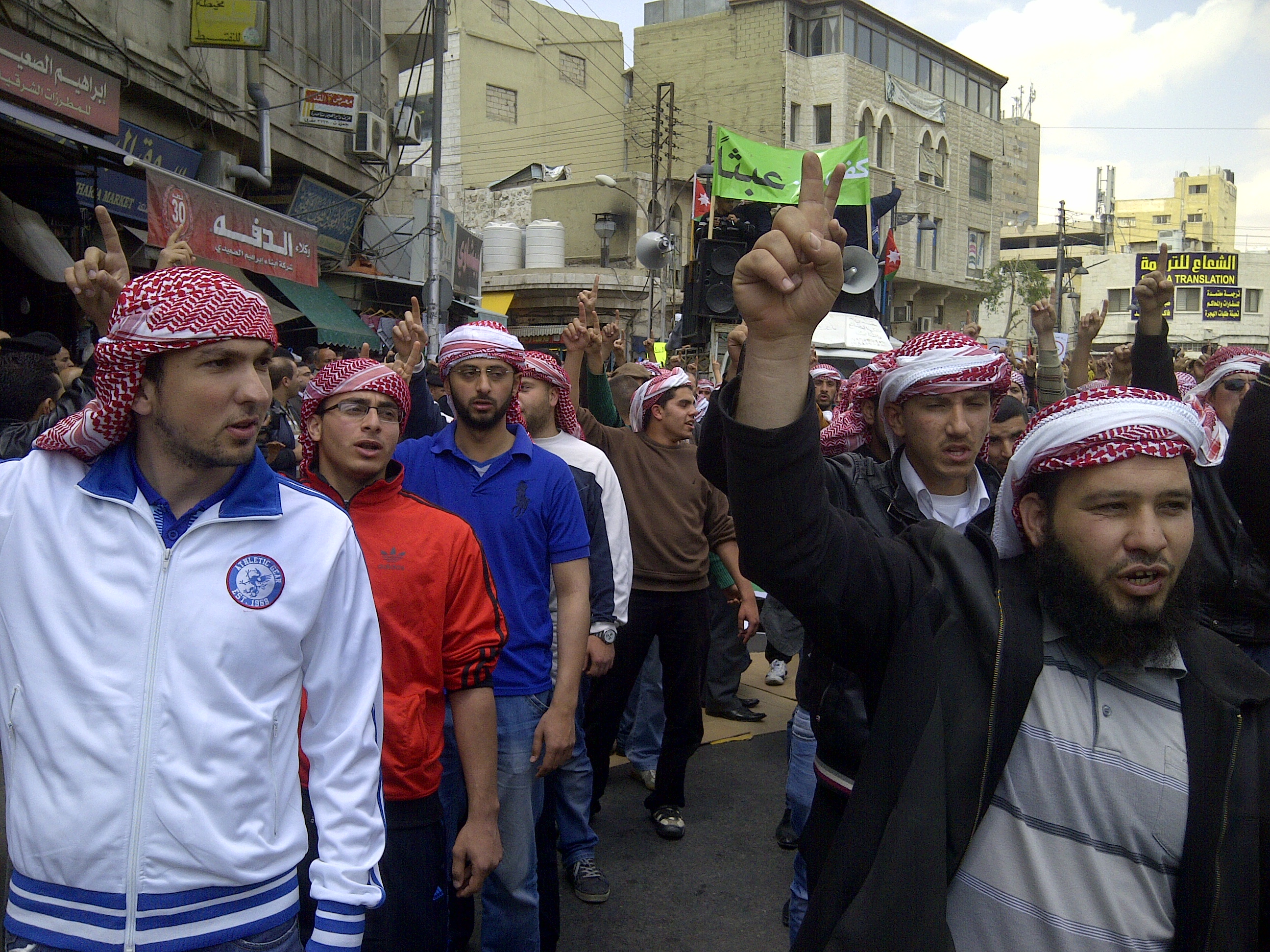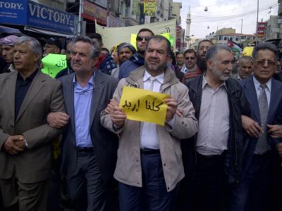 وشارك الآلاف من أبناء الحركة الاسلامية والحراكات الشعبية في الفعالية التي رفع فيها المشاركون شعارات منها: "كلنا اربد".. "كفى عبثا".."أوقفوا البلطجة" مرددين هتافات اتسمت بالسقف المرتفع والتي طالت رأس النظام.