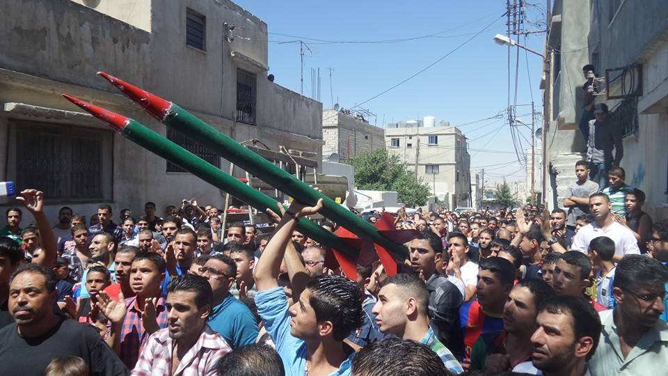 ورفع المشاركون شعارات تندد بالعدوان الإسرائيلي على قطاع غزة، إضافة إلى مجسمات تمثل صواريخ المقاومة الفلسطينية.