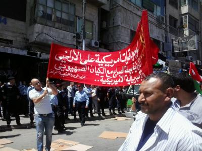 فيما انفصلت عن المشاركين العشرات في مسيرة أخرى بتنظيم من ائتلاف الأحزاب اليسارية والقومية، وتحت ذات الشعارات الرافضة لتواجد القوات الأمريكية على الأراضي الأردنية والمطالبة بعدم التورط بالأزمة السورية.
