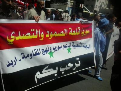 ورفع المشاركون شعارات منها: "كرامة جيشنا من كرامتنا".. "الله الشعب الجيش حامينا".. "جيشنا ليس لعبة بأيديكم"، مرددين هتافات "ع المكشوف ع المكشوف.. أمريكي ما بدنا نشوف"....