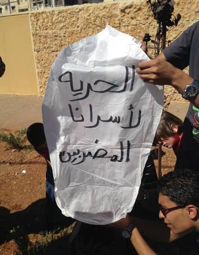 وحملت المناطيد شعارات تضامنية تطالب بإطلاق سراح الأسرى والمعتقلين.