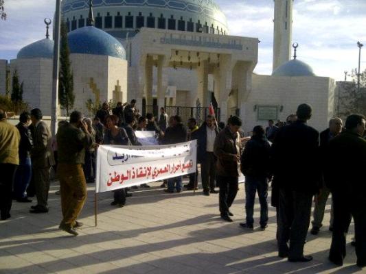نفذ العشرات من تجمع "أحرار العاصمة عمان" وعدد من الحراكات الشعبية والشبابية اعتصاما مساء الاثنين أمام مسجد الملك عبد الله المؤسس، في العبدلي ومقابل مجلس الأمة تحت شعار "النظام يريد إسقاط الشعب"، وذلك احتجاجا على مخرجات العملية الانتخابية ورفضا للتعيينات الأخيرة ومن بينها تعين الدكتور فايز الطراونة رئيسا للديوان الملكي.